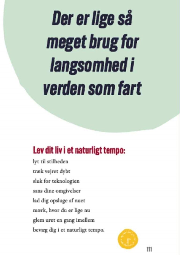 Det konstante fokus på at nå mere, får os til at glemme at være i det, vi faktisk er i gang med. Og vi bliver mere og mere frustrerede over alt det, vi ikke når og samtidig har vi følelsen af at den ene dag tager den næste og at tiden flyver afsted. Men heldigvis findes der veje til skabe små åndehuller, hvor du kan få følelsen af at have tid nok.